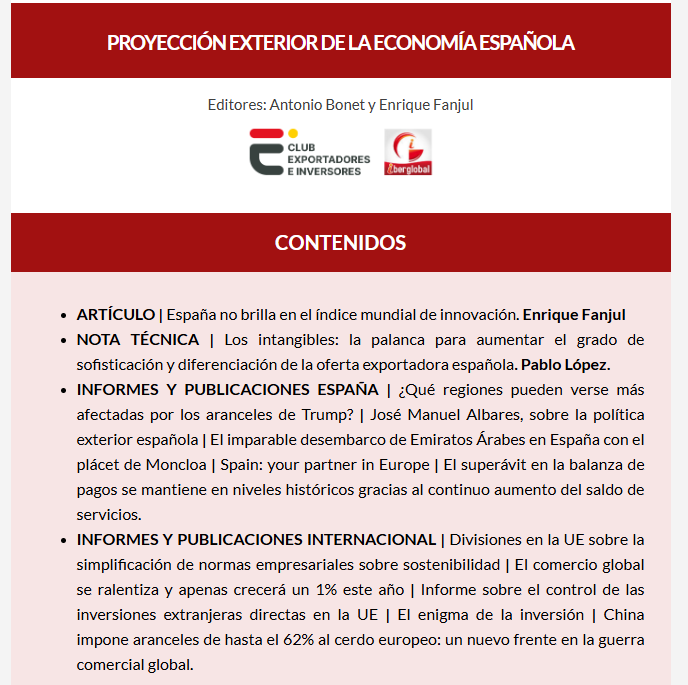 Revista electrónica mensual sobre internacionalización de la economía española, editada por Iberglobal y el Club de Exportadores. Último número (octubre 2025).