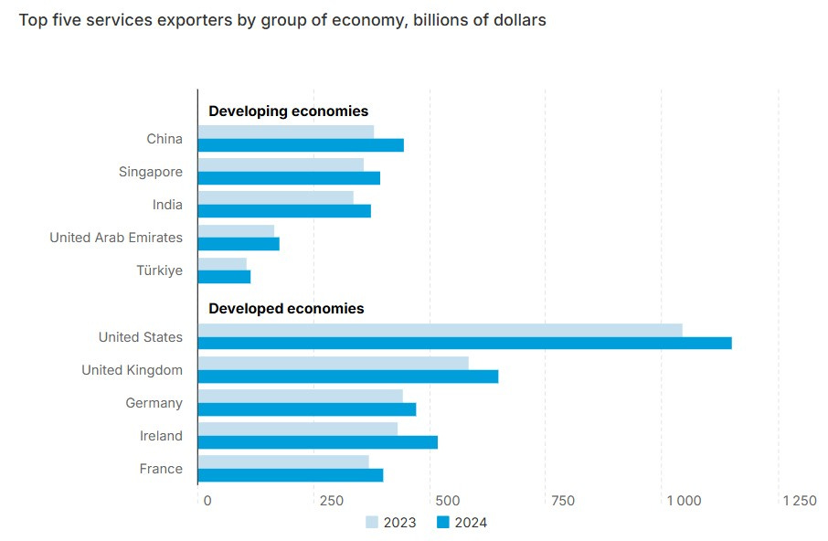 Una útil y atractiva serie de infografías y gráficos interactivos en UNCTAD sobre el comercio internacional de servicios en la economía mundial. Incluye posibilidad de consultar datos por países y categorías.